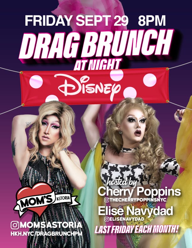 Come to Mom's in Astoria on the last Friday each month for Drag Brunch at Night featuring all of the excitement, performances, food and cocktails of a weekend drag brunch, but at night.