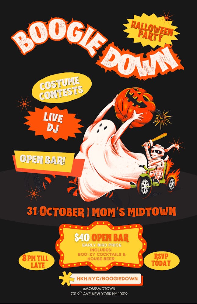 Join us at Mom's Midtown for a Boogie Down Dance Party on Halloween.