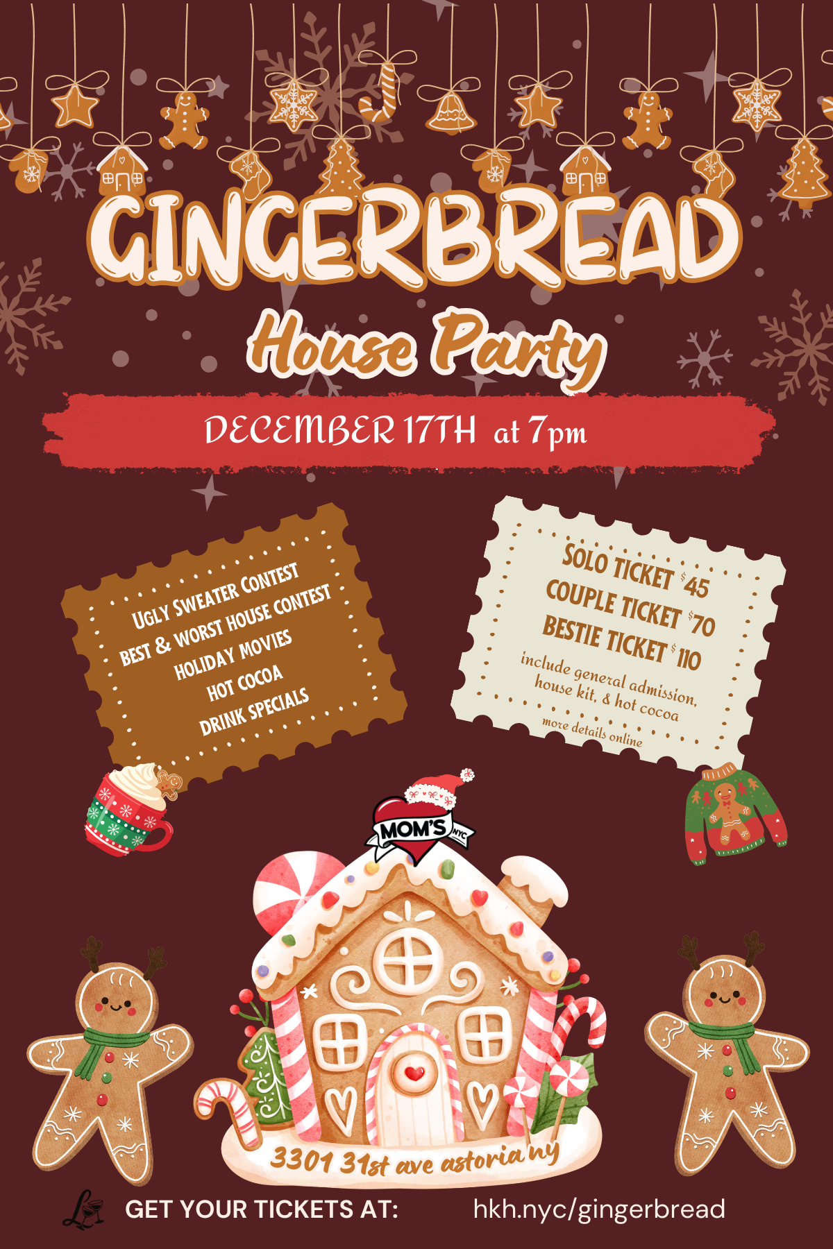 Bring your crew in to compete in our gingerbread house party and sip on some Holiday Cocktails while building your Gingerbread House Masterpiece.